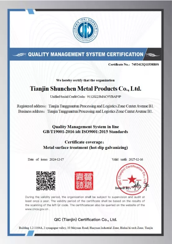 Il senior management di Shunchen ha oltre 20 anni di esperienza e tecnologia nella produzione di zincatura a caldo.