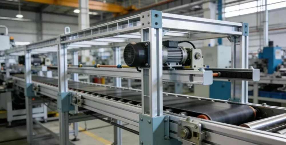 Settore della produzione di macchinari: struttura del telaio del trasportatore per linee di produzione automatizzate