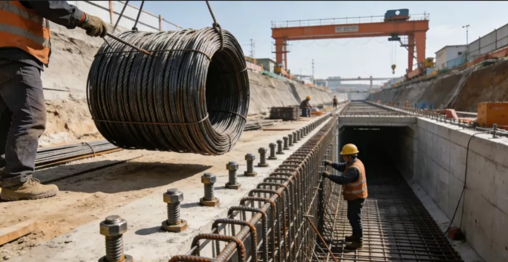 Caso tipico: progetto di una galleria di tubi governativi in una determinata città di Tianjin, bobina in acciaio ad alta resistenza HRB500 personalizzata (diametro 10 mm), carico di snervamento ≥ 500 MPa, resistenza alla trazione ≥ 630 MPa, che soddisfa i requisiti di utilizzo dell'ambiente umido sotterraneo a lungo termine della galleria di tubi. Dopo l'imballaggio e il trasporto impermeabili, viene lavorato e rinforzato con bulloni pre-incastonati, con un dosaggio di 190 tonnellate, migliorando efficacemente la resistenza alle crepe e la capacità portante della struttura della galleria di tubi, soddisfacendo gli standard di accettazione dell'ingegneria municipale e garantendo il funzionamento sicuro della galleria di tubi.