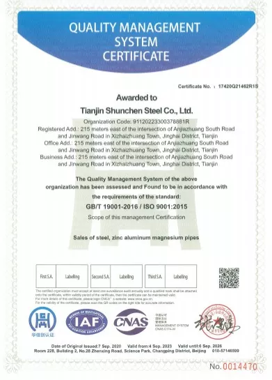 Facendo affidamento sulle risorse della base dell'industria siderurgica di Tianjin, la produzione di massa garantisce una fornitura tempestiva. La superficie del prodotto è priva di ossidazione e ruggine, con una forte consistenza qualitativa e un'eccezionale capacità di fornitura stabile. Scegliendo Shunchen Industrial, puoi usufruire di servizi di approvvigionamento unici che integrano produzione e vendita, con un supporto sufficiente fornito da 10.000 yuan di liquidazione.