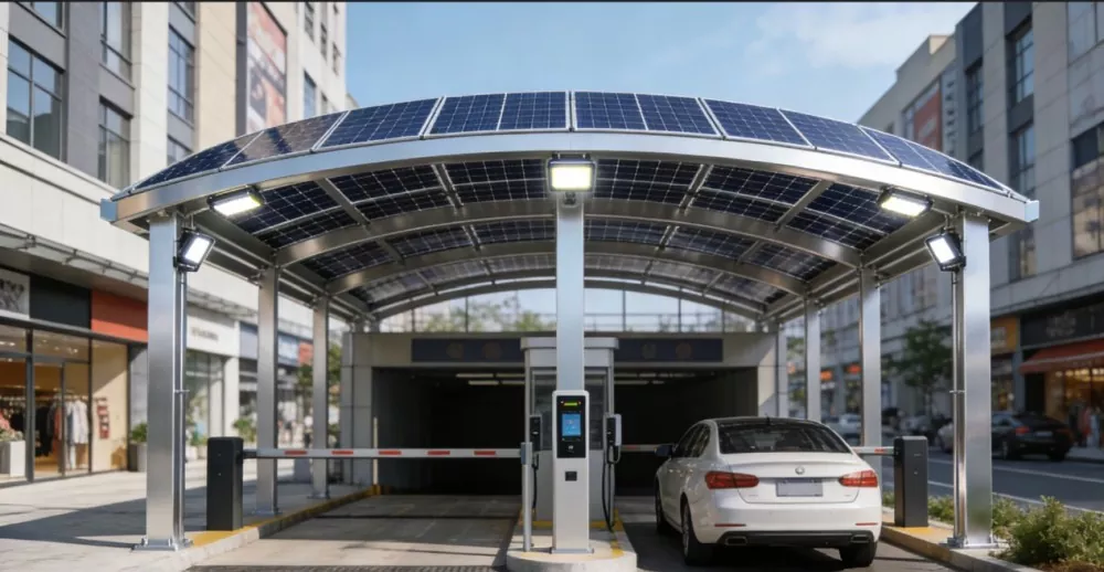 La struttura per posto auto coperto solare di Shunchen Industrial vanta diverse funzioni e un posizionamento preciso. Essendo una struttura di base per la protezione del parcheggio, resiste efficacemente all'esposizione al sole, alla pioggia e alla pressione della neve, fornendo una protezione completa per la vernice e i componenti del veicolo e migliorando il comfort di parcheggio. Allo stesso tempo, funge da piattaforma ideale per le centrali fotovoltaiche, fornendo una base stabile per i moduli fotovoltaici, garantendo che i pannelli ricevano energia solare con l'angolo di inclinazione ottimale e distribuendo uniformemente il carico sulla fondazione, garantendo stabilità strutturale e sicurezza. Inoltre, questa struttura possiede potenti capacità di conversione e utilizzo dell'energia, convertendo l'energia solare in elettricità per la connessione alla rete o il consumo locale, come alimentare le stazioni di ricarica, soddisfare il fabbisogno elettrico del parco, promuovere la sostituzione dell'energia pulita e ridurre i costi dell'elettricità. Ancora più importante, supporta l’adattamento multi-scenario e può essere integrato con stazioni di ricarica, illuminazione intelligente, sistemi di monitoraggio, ecc., per creare una soluzione di parcheggio intelligente integrata che combina “parcheggio + generazione di energia + ricarica”.